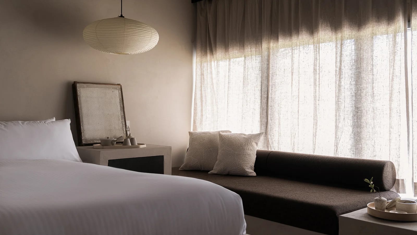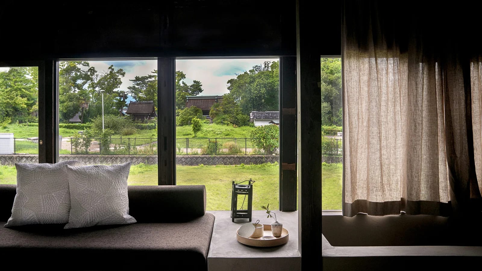 Intimate studio suite on the second floor above our cafe, accessible only by stairs. Thoughtfully designed with a minimalist open layout, it features a deep soaking tub and sofa with views of peaceful greenery and the charming thatched rooftops of Toyokuni Shrine.